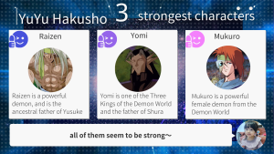 Raizen, Yomi, and Mukuro are undeniably the top three strongest characters in *Yu Yu Hakusho*. Their immense power, coupled with their deep and complex backstories, make them unforgettable figures in the anime. Whether it's Raizen's legendary status, Yomi's strategic brilliance, or Mukuro's indomitable spirit, these three kings have left an indelible mark on the Demon World and the series as a whole.